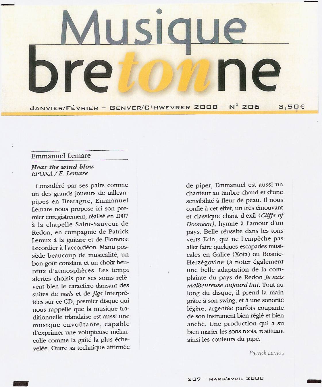 Album enregistré dans la chapelle du lycée St Sauveur à Redon, en co-production Emmanuel Lemare et Co-Lelabel. Distribution Coop Breizh. Pour commander l'album, voir sur les sites Co-lelabel ou Coop Breizh. Page liens Emmanuel Lemare